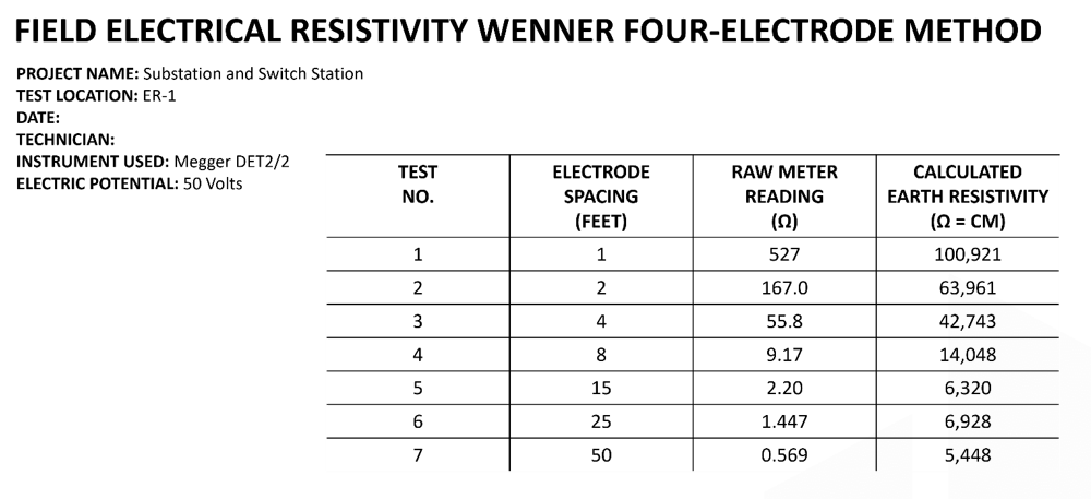 Unfortunately, many testing firms are not familiar with IEEE Std 81 and the common pitfalls of soil resistivity testing. Successful test requirements include: